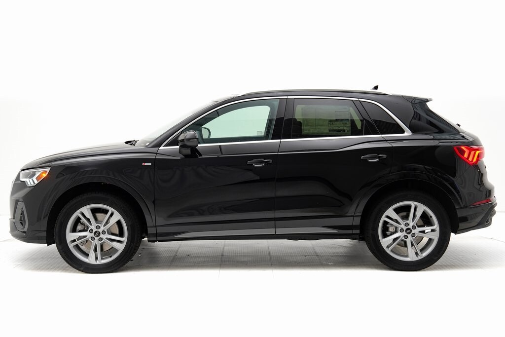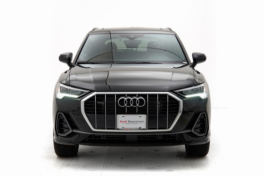 Audi Beaverton offers this 2024 Mythos Black Metallic Audi Q3 Premium AWD. It is well equipped and includes these features and benefits: 19" Wheel Package, Convenience Package (Driver Seat Memory and Wireless Phone Charging Pad), Audi Certified pre-owned Certified, 10 Speakers, 3.53 Axle Ratio, 4-Wheel Disc Brakes, ABS brakes, Air Conditioning, Alloy wheels, AM/FM radio, Audi Beam-Rings, Audi Cargo Box, Audi Guard Protection Kit, Audi smartphone interface (Apple CarPlay/Android Auto), Auto High-beam Headlights, Automatic temperature control, Brake assist, Brown Gray Natural Wood Inlay, Bumpers: body-color, Delay-off headlights, Driver door bin, Driver vanity mirror, Dual front impact airbags, Dual front side impact airbags, Electronic Stability Control, Emergency communication system: Audi connect CARE, Exterior Parking Camera Rear, Four wheel independent suspension, Front anti-roll bar, Front Bucket Seats, Front Center Armrest, Front dual zone A/C, Front fog lights, Front reading lights, Fully automatic headlights, Heated door mirrors, Heated Front Bucket Seats, Heated front seats, Illuminated entry, Knee airbag, Leather Seating Surfaces, Leather Shift Knob, Leather steering wheel, Low tire pressure warning, Occupant sensing airbag, Outside temperature display, Overhead airbag, Overhead console, Panic alarm, Passenger door bin, Passenger vanity mirror, Power door mirrors, Power driver seat, Power Liftgate, Power moonroof: Panoramic, Power passenger seat, Power steering, Power windows, Radio data system, Radio: Audi Sound System, Rain sensing wipers, Rear air conditioning, Rear anti-roll bar, Rear fog lights, Rear reading lights, Rear seat center armrest, Rear window defroster, Rear window wiper, Remote keyless entry, Speed control, Speed-sensing steering, Split folding rear seat, Spoiler, Steering wheel mounted audio controls, Tachometer, Telescoping steering wheel, Tilt steering wheel, Traction control, Trip computer, Turn signal indicator mirrors, Variably intermittent wipers, and Wheels: 18" 5-V-Spoke-S Design. Bluetooth.