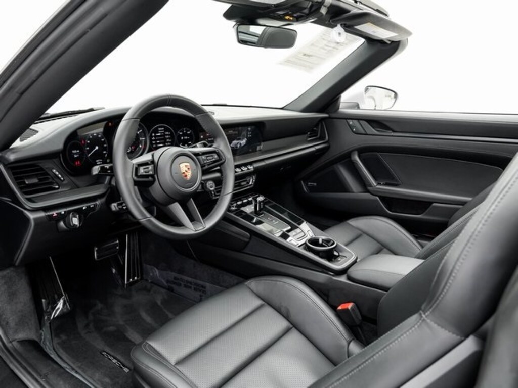 Porsche Beaverton offers this 2024 GT Silver Metallic Porsche 911 Targa 4 GTS AWD. It is well equipped and includes these features and benefits: Sound Package Plus, Porsche Approved Certified Pre-Owned Certified, AWD, ABS brakes, Alloy wheels, Electronic Stability Control, Front dual zone A/C, Heated door mirrors, Heated front seats, Illuminated entry, Low tire pressure warning, Porsche Communication Management, Remote keyless entry, Traction control, 4-Way Sport Seats Plus, 4-Wheel Disc Brakes, 8 Speakers, Adaptive suspension, Air Conditioning, Auto High-beam Headlights, Auto-dimming door mirrors, Auto-dimming Rear-View mirror, Automatic temperature control, Brake assist, Bumpers: body-color, Convertible roof lining, Delay-off headlights, Driver door bin, Driver vanity mirror, Dual front impact airbags, Dual front side impact airbags, Exterior Parking Camera Rear, Four wheel independent suspension, Front anti-roll bar, Front Bucket Seats, Front Center Armrest, Front reading lights, Fully automatic headlights, Garage door transmitter: HomeLink, Glass rear window, Integrated roll-over protection, Leather/Race-Tex Seat Trim, Navigation system: Porsche Communication Management (PCM), Occupant sensing airbag, Outside temperature display, Overhead airbag, Overhead console, Passenger door bin, Passenger vanity mirror, Power convertible roof, Power door mirrors, Power driver seat, Power passenger seat, Power steering, Power windows, Radio data system, Rain sensing wipers, Rear anti-roll bar, Rear fog lights, Rear window defroster, Security system, Speed control, Split folding rear seat, Spoiler, Sport steering wheel, Steering wheel mounted audio controls, Tachometer, Telescoping steering wheel, Tilt steering wheel, Trip computer, Variably intermittent wipers, and Wheels: 20" Fr/21" Rr 911 Turbo S in Satin Black. AWD, ABS brakes, Alloy wheels, Electronic Stability Control, Front dual zone A/C, Heated door mirrors, Heated front seats, Illuminated entry, Low tire pressure warning, Porsche Communication Management, Remote keyless entry, Traction control.