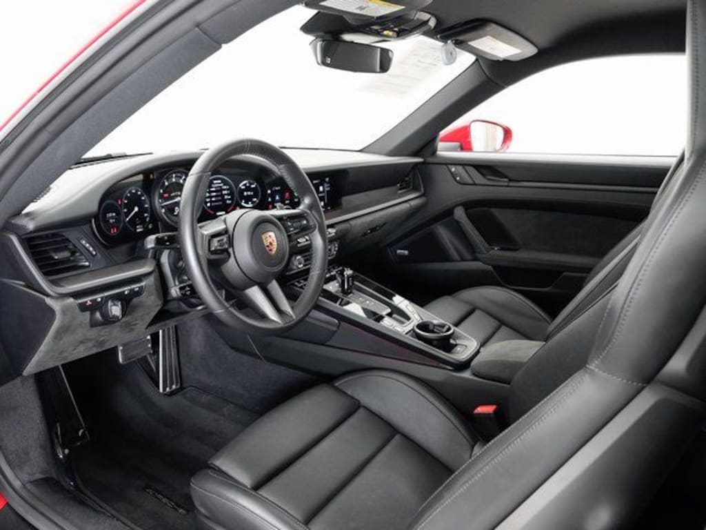 Porsche Beaverton offers this 2024 Carmine Red Porsche 911 Carrera GTS RWD. It is well equipped and includes these features and benefits: Sound Package Plus, Porsche Approved Certified Pre-Owned Certified, ABS brakes, Alloy wheels, Electronic Stability Control, Front dual zone A/C, Heated door mirrors, Heated front seats, Illuminated entry, Low tire pressure warning, Porsche Communication Management, Remote keyless entry, Traction control, 4-Way Sport Seats Plus, 4-Wheel Disc Brakes, 8 Speakers, Adaptive suspension, Air Conditioning, Auto High-beam Headlights, Auto-dimming door mirrors, Auto-dimming Rear-View mirror, Automatic temperature control, Brake assist, Bumpers: body-color, Delay-off headlights, Driver door bin, Driver vanity mirror, Dual front impact airbags, Dual front side impact airbags, Exterior Parking Camera Rear, Four wheel independent suspension, Front anti-roll bar, Front Bucket Seats, Front Center Armrest, Front reading lights, Fully automatic headlights, Garage door transmitter: HomeLink, Leather/Race-Tex Seat Trim, Navigation system: Porsche Communication Management (PCM), Occupant sensing airbag, Outside temperature display, Overhead airbag, Overhead console, Passenger door bin, Passenger vanity mirror, Power door mirrors, Power driver seat, Power passenger seat, Power steering, Power windows, Radio data system, Rain sensing wipers, Rear anti-roll bar, Rear fog lights, Rear window defroster, Security system, Speed control, Split folding rear seat, Spoiler, Sport steering wheel, Steering wheel mounted audio controls, Tachometer, Telescoping steering wheel, Tilt steering wheel, Trip computer, Variably intermittent wipers, and Wheels: 20" Fr/21" Rr 911 Turbo S in Satin Black. ABS brakes, Alloy wheels, Electronic Stability Control, Front dual zone A/C, Heated door mirrors, Heated front seats, Illuminated entry, Low tire pressure warning, Porsche Communication Management, Remote keyless entry, Traction control.