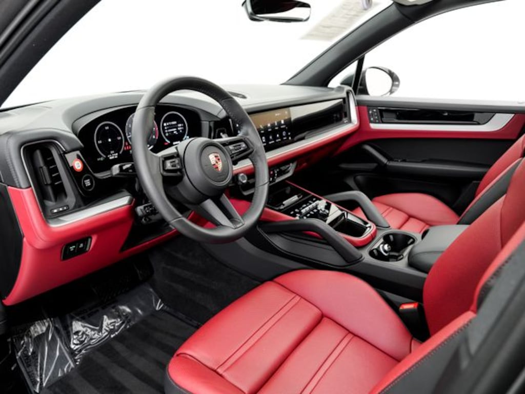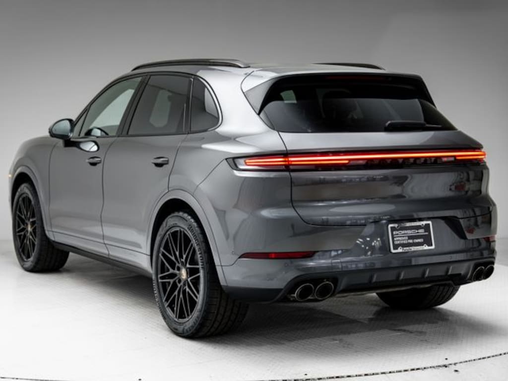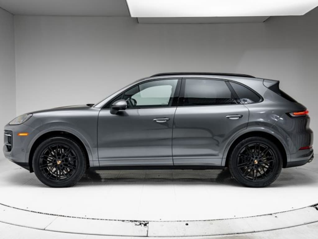 Porsche Beaverton offers this 2025 Quartzite Grey Metallic Porsche Cayenne AWD. It is well equipped and includes these features and benefits: Porsche Approved Certified Pre-Owned Certified, Black/Bordeaux Red w/Leather Seat Trim with Two-Tone Leather Interior, 10 Speakers, 4-Wheel Disc Brakes, 8-Way Power Seats, ABS brakes, Adaptive suspension, Air Conditioning, Alloy wheels, AM/FM radio: SiriusXM w/360L, Apple CarPlay & Android Auto, Artificial Leather Seat Trim, Audio memory, Auto-dimming door mirrors, Auto-dimming Rear-View mirror, Automatic temperature control, Brake assist, Bumpers: body-color, Compass, Delay-off headlights, Driver door bin, Driver vanity mirror, Dual front impact airbags, Dual front side impact airbags, Electronic Stability Control, Exterior Parking Camera Rear, Four wheel independent suspension, Front anti-roll bar, Front Bucket Seats, Front Center Armrest, Front dual zone A/C, Front reading lights, Fully automatic headlights, Garage door transmitter: HomeLink, Heated door mirrors, Heated front seats, Heated steering wheel, HVAC memory, Illuminated entry, Knee airbag, Leather steering wheel, Low tire pressure warning, Memory seat, Navigation System, Occupant sensing airbag, Outside temperature display, Overhead airbag, Overhead console, Panic alarm, Passenger door bin, Passenger vanity mirror, Porsche Communication Management, Power door mirrors, Power driver seat, Power Liftgate, Power passenger seat, Power steering, Power windows, Radio data system, Rain sensing wipers, Rear anti-roll bar, Rear fog lights, Rear reading lights, Rear seat center armrest, Rear side impact airbag, Rear window defroster, Rear window wiper, Remote keyless entry, Security system, Speed control, Speed-sensing steering, Split folding rear seat, Spoiler, Steering wheel mounted audio controls, Tachometer, Telescoping steering wheel, Tilt steering wheel, Traction control, Trip computer, Turn signal indicator mirrors, Variably intermittent wipers, Voltmeter, and Wheels: 20" Cayenne Design. Bluetooth, Black/Bordeaux Red w/Leather Seat Trim with Two-Tone Leather Interior.