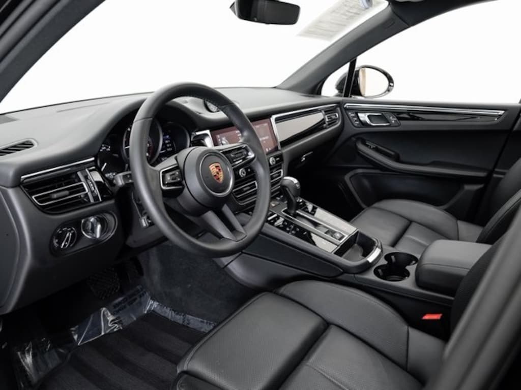 Porsche Beaverton offers this 2025 Jet Black Metallic Porsche Macan Base AWD. It is well equipped and includes these features and benefits: Porsche Approved Certified Pre-Owned Certified, ABS brakes, Active Cruise Control, Alloy wheels, Electronic Stability Control, Emergency communication system, Front dual zone A/C, Heated door mirrors, Heated front seats, Illuminated entry, Low tire pressure warning, Navigation System, Porsche Communication Management, Power Liftgate, Remote keyless entry, Traction control, 4-Wheel Disc Brakes, 8 Speakers, 8-Way Heated Front Comfort Seats, Air Conditioning, AM/FM radio: SiriusXM, Apple CarPlay, Auto-dimming door mirrors, Auto-dimming Rear-View mirror, Automatic temperature control, Brake assist, Bumpers: body-color, Delay-off headlights, Driver door bin, Driver vanity mirror, Dual front impact airbags, Dual front side impact airbags, Exterior Parking Camera Rear, Four wheel independent suspension, Front anti-roll bar, Front Bucket Seats, Front Center Armrest, Front reading lights, Fully automatic headlights, Garage door transmitter: HomeLink, Leather Shift Knob, Leather steering wheel, Memory seat, Occupant sensing airbag, Outside temperature display, Overhead airbag, Overhead console, Panic alarm, Passenger door bin, Passenger vanity mirror, Power door mirrors, Power driver seat, Power passenger seat, Power steering, Power windows, Radio data system, Rain sensing wipers, Rear air conditioning, Rear anti-roll bar, Rear reading lights, Rear seat center armrest, Rear side impact airbag, Rear window defroster, Rear window wiper, Security system, Speed control, Speed-sensing steering, Split folding rear seat, Spoiler, Sport steering wheel, Standard Seat Trim, Steering wheel mounted audio controls, Tachometer, Telescoping steering wheel, Tilt steering wheel, Trip computer, Turn signal indicator mirrors, Variably intermittent wipers, and Wheels: 19" Macan. ABS brakes, Active Cruise Control, Alloy wheels, Electronic Stability Control, Emergency communication system, Front dual zone A/C, Heated door mirrors, Heated front seats, Illuminated entry, Low tire pressure warning, Navigation System, Porsche Communication Management, Power Liftgate, Remote keyless entry, Traction control.