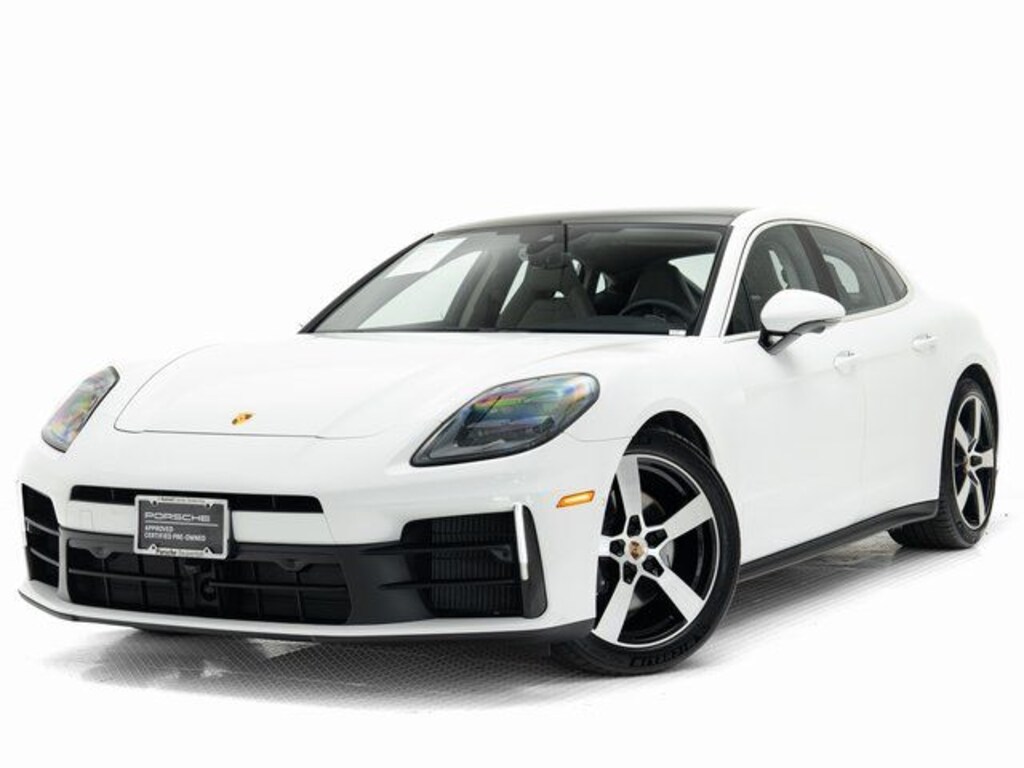 Porsche Beaverton offers this 2025 White Porsche Panamera 4 AWD. It is well equipped and includes these features and benefits: 14-Way Comfort Seats with Memory Package, Sound Package Plus, Porsche Approved Certified Pre-Owned Certified, AWD, 10 Speakers, 19" Panamera Wheels, 4-Wheel Disc Brakes, ABS brakes, Adaptive suspension, Air Conditioning, Alloy wheels, AM/FM radio: SiriusXM w/360L, Apple CarPlay & Android Auto, Artificial Leather Seat Trim, Audio memory, Auto-dimming door mirrors, Auto-dimming Rear-View mirror, Auto-leveling suspension, Automatic temperature control, Brake assist, Bumpers: body-color, Compass, Delay-off headlights, Driver door bin, Driver vanity mirror, Dual front impact airbags, Dual front side impact airbags, Electronic Stability Control, Exterior Parking Camera Rear, Four wheel independent suspension, Front anti-roll bar, Front Bucket Seats, Front Center Armrest, Front dual zone A/C, Front reading lights, Fully automatic headlights, Garage door transmitter: HomeLink, Heated door mirrors, Heated front seats, Heated steering wheel, HVAC memory, Illuminated entry, Leather steering wheel, Low tire pressure warning, Memory seat, Navigation System, Occupant sensing airbag, Outside temperature display, Overhead airbag, Overhead console, Panic alarm, Passenger door bin, Passenger vanity mirror, Porsche Communication Management (PCM) Radio, Power door mirrors, Power driver seat, Power Liftgate, Power moonroof, Power passenger seat, Power steering, Power windows, Radio data system, Rain sensing wipers, Rear anti-roll bar, Rear fog lights, Rear reading lights, Rear seat center armrest, Rear side impact airbag, Rear window defroster, Remote keyless entry, Security system, Speed control, Speed-sensing steering, Split folding rear seat, Spoiler, Steering wheel mounted audio controls, Tachometer, Telescoping steering wheel, Tilt steering wheel, Traction control, Trip computer, and Variably intermittent wipers. Bluetooth, AWD.