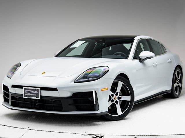 Porsche Beaverton offers this 2025 Gray Porsche Panamera 4 AWD. It is well equipped and includes these features and benefits: 14-Way Comfort Seats with Memory Package, Sound Package Plus, Porsche Approved Certified Pre-Owned Certified, AWD, 10 Speakers, 19" Panamera Wheels, 4-Wheel Disc Brakes, ABS brakes, Adaptive suspension, Air Conditioning, Alloy wheels, AM/FM radio: SiriusXM w/360L, Apple CarPlay & Android Auto, Artificial Leather Seat Trim, Audio memory, Auto-dimming door mirrors, Auto-dimming Rear-View mirror, Auto-leveling suspension, Automatic temperature control, Brake assist, Bumpers: body-color, Compass, Delay-off headlights, Driver door bin, Driver vanity mirror, Dual front impact airbags, Dual front side impact airbags, Electronic Stability Control, Exterior Parking Camera Rear, Four wheel independent suspension, Front anti-roll bar, Front Bucket Seats, Front Center Armrest, Front dual zone A/C, Front reading lights, Fully automatic headlights, Garage door transmitter: HomeLink, Heated door mirrors, Heated front seats, Heated steering wheel, HVAC memory, Illuminated entry, Leather steering wheel, Low tire pressure warning, Memory seat, Navigation System, Occupant sensing airbag, Outside temperature display, Overhead airbag, Overhead console, Panic alarm, Passenger door bin, Passenger vanity mirror, Porsche Communication Management (PCM) Radio, Power door mirrors, Power driver seat, Power Liftgate, Power moonroof, Power passenger seat, Power steering, Power windows, Radio data system, Rain sensing wipers, Rear anti-roll bar, Rear fog lights, Rear reading lights, Rear seat center armrest, Rear side impact airbag, Rear window defroster, Remote keyless entry, Security system, Speed control, Speed-sensing steering, Split folding rear seat, Spoiler, Steering wheel mounted audio controls, Tachometer, Telescoping steering wheel, Tilt steering wheel, Traction control, Trip computer, and Variably intermittent wipers. Bluetooth, AWD.