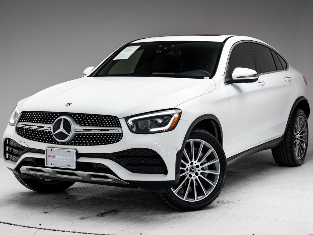 Audi Beaverton offers this 2020 Polar White Mercedes-Benz GLC 300 Coupe AWD. It is well equipped and includes these features and benefits: 3.27 Axle Ratio, 4-Way Lumbar Support, 4-Wheel Disc Brakes, 6 Speakers, ABS brakes, Air Conditioning, Alloy wheels, AM/FM radio: SiriusXM, Apple CarPlay®/Android Auto®, Auto tilt-away steering wheel, Auto-dimming door mirrors, Auto-dimming Rear-View mirror, Automatic temperature control, Brake assist, Bumpers: body-color, Child-Seat-Sensing Airbag, Delay-off headlights, Driver door bin, Driver vanity mirror, Dual front impact airbags, Dual front side impact airbags, Electronic Stability Control, Emergency communication system: eCall Emergency System, Exterior Parking Camera Rear, Four wheel independent suspension, Front anti-roll bar, Front Bucket Seats, Front Center Armrest, Front dual zone A/C, Front reading lights, Fully automatic headlights, Garage door transmitter: Homelink, Genuine wood dashboard insert, Heated door mirrors, Heated Front Bucket Seats, Heated front seats, Illuminated entry, Knee airbag, Leather steering wheel, Low tire pressure warning, MB-Tex Upholstery, Memory seat, Occupant sensing airbag, Outside temperature display, Overhead airbag, Overhead console, Panic alarm, Passenger door bin, Passenger vanity mirror, Power door mirrors, Power driver seat, Power Driver Seat & Steering Column w/Memory, Power Liftgate, Power moonroof: Panorama, Power Passenger Seat, Power passenger seat, Power steering, Power windows, Premium audio system: MBUX, Radio data system, Radio: MBUX Multimedia System, Rain sensing wipers, Rear anti-roll bar, Rear fog lights, Rear reading lights, Rear seat center armrest, Rear window defroster, Remote keyless entry, Security system, Speed control, Speed-sensing steering, Split folding rear seat, Steering wheel memory, Steering wheel mounted audio controls, Tachometer, Telescoping steering wheel, Tilt steering wheel, Traction control, Trip computer, Turn signal indicator mirrors, Variably intermittent wipers, and Wheels: 19" 5-Spoke w/Grey Accents. Bluetooth.