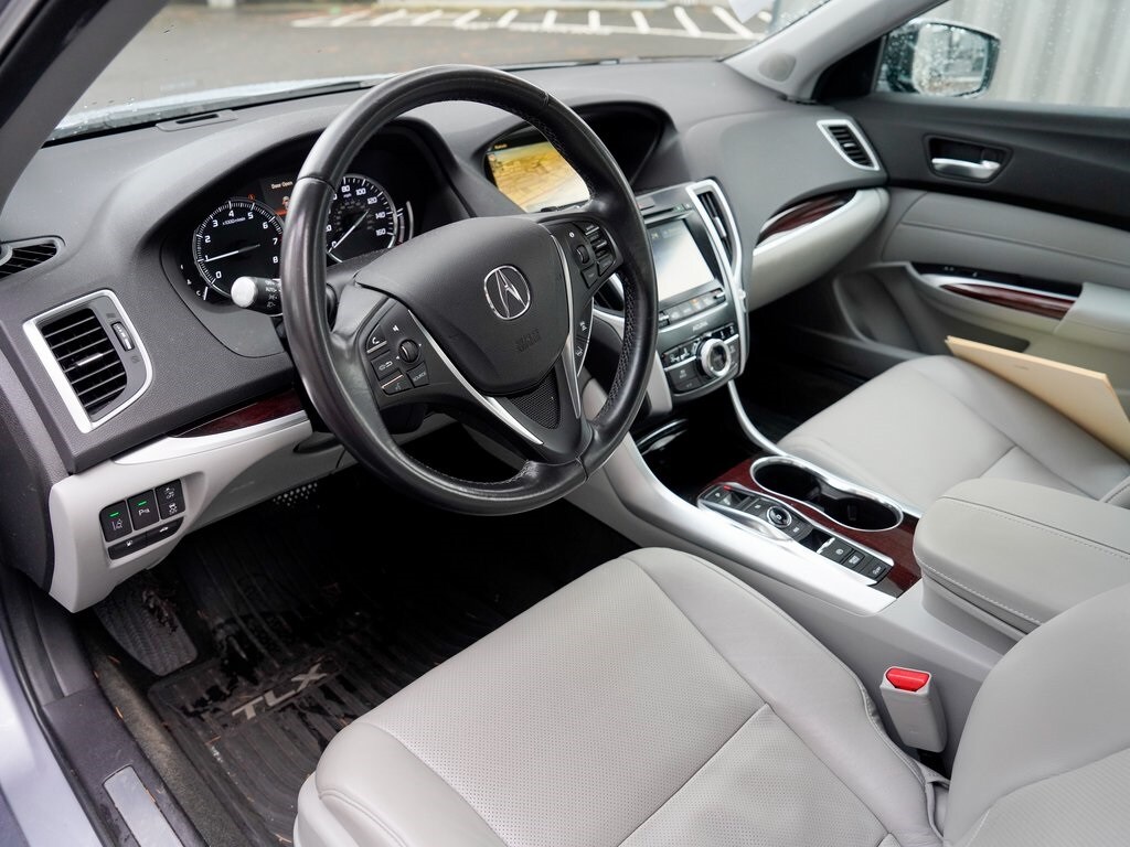 Audi Beaverton offers this 2015 Slate Silver Metallic Acura TLX 3.5L V6 AWD. It is well equipped and includes these features and benefits: 10 Speakers, 18" x 7.5" Aluminum Alloy Wheels, 4-Wheel Disc Brakes, ABS brakes, Air Conditioning, Alloy wheels, AM/FM radio: SiriusXM, Anti-whiplash front head restraints, Auto-dimming door mirrors, Auto-dimming Rear-View mirror, Automatic temperature control, Brake assist, Bumpers: body-color, CD player, Compass, Delay-off headlights, Driver door bin, Driver vanity mirror, Dual front impact airbags, Dual front side impact airbags, Electronic Stability Control, Exterior Parking Camera Rear, Four wheel independent suspension, Front anti-roll bar, Front Bucket Seats, Front Center Armrest w/Storage, Front dual zone A/C, Front fog lights, Front reading lights, Garage door transmitter: HomeLink, Heated & Ventilated Front Sport Seats, Heated door mirrors, Heated front seats, HVAC memory, Illuminated entry, Knee airbag, Lane Departure Warning System, Leather steering wheel, Low tire pressure warning, Memory seat, Navigation System, Occupant sensing airbag, Outside temperature display, Overhead airbag, Overhead console, Panic alarm, Passenger door bin, Passenger vanity mirror, Power door mirrors, Power driver seat, Power moonroof, Power passenger seat, Power steering, Power windows, Premium audio system: Acura/ELS Surround, Premium Milano Perforated Leather Trimmed Seats, Radio data system, Radio: Acura/ELS Studio Premium Audio System, Rain sensing wipers, Rear anti-roll bar, Rear seat center armrest, Rear window defroster, Remote keyless entry, Security system, Speed control, Speed-sensing steering, Speed-Sensitive Wipers, Split folding rear seat, Sport steering wheel, Steering wheel mounted audio controls, Tachometer, Telescoping steering wheel, Tilt steering wheel, Traction control, Trip computer, Turn signal indicator mirrors, Variably intermittent wipers, and Ventilated front seats. Bluetooth.
