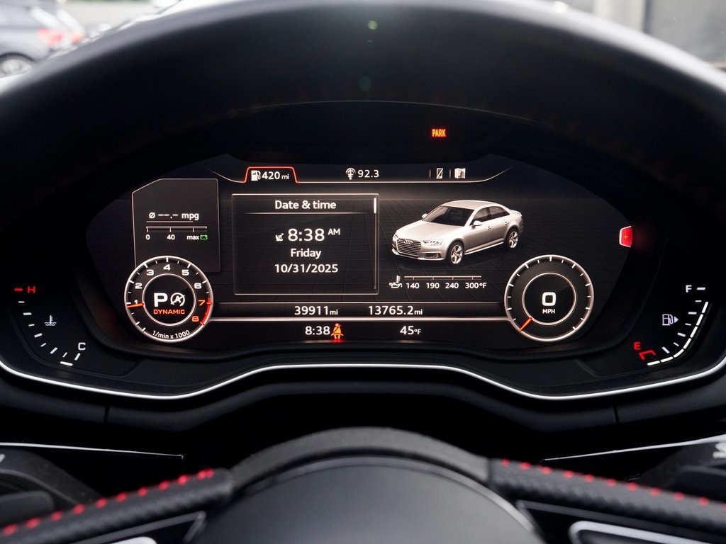Audi Beaverton offers this 2018 Florett Silver Metallic Audi A4 2.0T Premium Plus AWD. It is well equipped and includes these features and benefits: 7-Speed Automatic S tronic, quattro, Black/Red Contrast Stitch w/Leather Seating Surfaces, 10 Speakers, 4-Wheel Disc Brakes, ABS brakes, Air Conditioning, Alloy wheels, AM/FM radio, Anti-whiplash front head restraints, Audi smartphone interface (Apple CarPlay/Android Auto), Auto-dimming Rear-View mirror, Automatic temperature control, Brake assist, Bumpers: body-color, Compass, Delay-off headlights, Driver door bin, Driver vanity mirror, Dual front impact airbags, Dual front side impact airbags, Electronic Stability Control, Exterior Parking Camera Rear, Four wheel independent suspension, Front anti-roll bar, Front Bucket Seats, Front Center Armrest, Front dual zone A/C, Front fog lights, Front reading lights, Garage door transmitter: HomeLink, Heated 3-Step Front Bucket Seats, Heated door mirrors, Heated front seats, High intensity discharge headlights: Xenon plus, Illuminated entry, Knee airbag, Leather Seating Surfaces, Leather Shift Knob, Leather steering wheel, Low tire pressure warning, Occupant sensing airbag, Outside temperature display, Overhead airbag, Overhead console, Panic alarm, Passenger door bin, Passenger vanity mirror, Power door mirrors, Power driver seat, Power moonroof, Power passenger seat, Power steering, Power windows, Radio data system, Radio: Audi Sound System, Rain sensing wipers, Rear air conditioning, Rear anti-roll bar, Rear fog lights, Rear reading lights, Rear seat center armrest, Rear window defroster, Remote CD player, Remote keyless entry, Speed control, Speed-sensing steering, Speed-Sensitive Wipers, Split folding rear seat, Steering wheel mounted audio controls, Tachometer, Telescoping steering wheel, Tilt steering wheel, Traction control, Trip computer, Turn signal indicator mirrors, Variably intermittent wipers, and Wheels: 7.5" x 17" 5-Spoke-Y Design. Bluetooth, 7-Speed Automatic S tronic, quattro, Black/Red Contrast Stitch w/Leather Seating Surfaces.