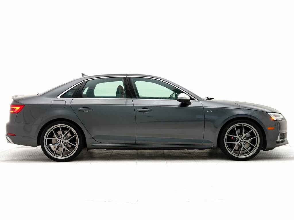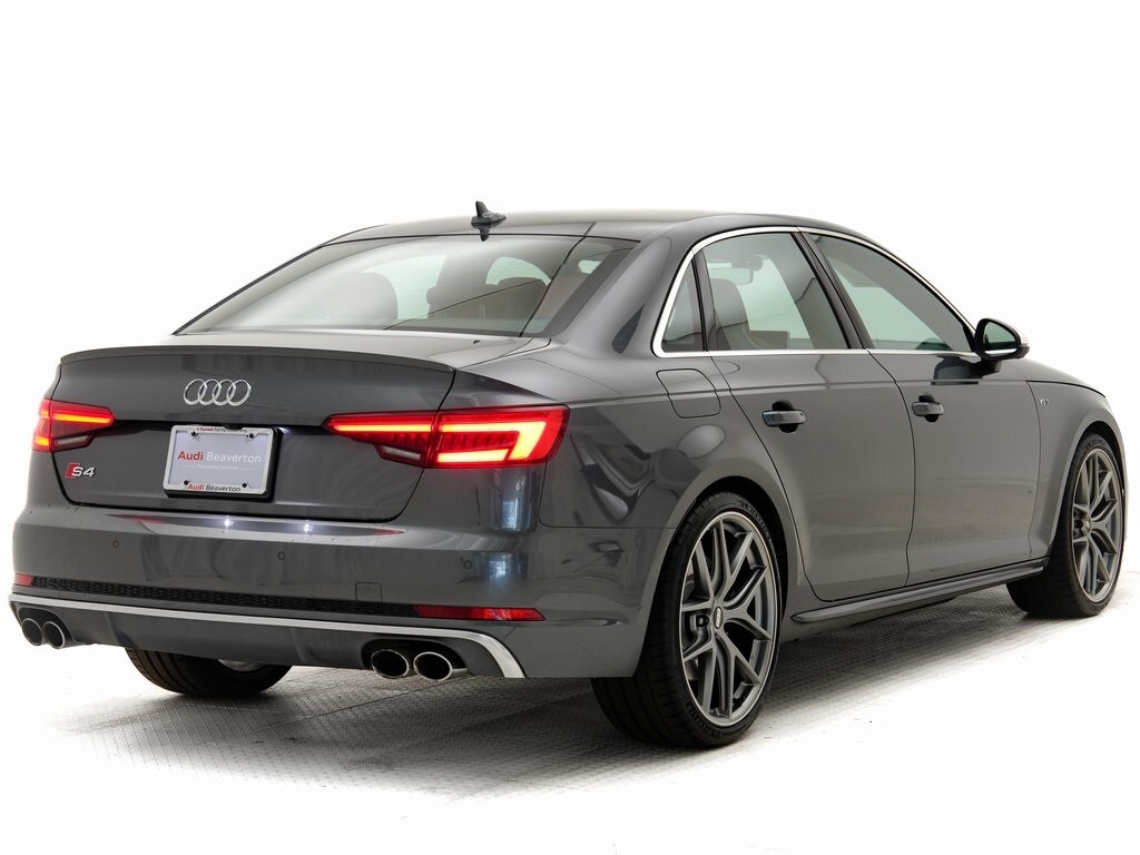 Audi Beaverton offers this 2018 Audi S4 3.0T Prestige AWD. It is well equipped and includes these features and benefits: 19 Speakers, 4-Wheel Disc Brakes, ABS brakes, Air Conditioning, Alloy wheels, AM/FM radio: SiriusXM, Audi smartphone interface (Apple CarPlay/Android Auto), Auto-dimming door mirrors, Auto-dimming Rear-View mirror, Automatic temperature control, Brake assist, Bumpers: body-color, CD player, Compass, Delay-off headlights, Driver door bin, Driver vanity mirror, Dual front impact airbags, Dual front side impact airbags, Electronic Stability Control, Emergency communication system: Audi connect CARE, Exterior Parking Camera Rear, Four wheel independent suspension, Front anti-roll bar, Front Bucket Seats, Front Center Armrest, Front dual zone A/C, Front fog lights, Front reading lights, Garage door transmitter: HomeLink, Heated 3-Step Front S Sport Seats, Heated door mirrors, Heated front seats, Illuminated entry, Knee airbag, Leather Shift Knob, Leather steering wheel, Leather/Alcantara Seat Trim, Low tire pressure warning, Memory seat, Occupant sensing airbag, Outside temperature display, Overhead airbag, Overhead console, Panic alarm, Passenger door bin, Passenger vanity mirror, Power door mirrors, Power driver seat, Power moonroof, Power passenger seat, Power steering, Power windows, Radio data system, Rain sensing wipers, Rear air conditioning, Rear anti-roll bar, Rear fog lights, Rear reading lights, Rear seat center armrest, Rear window defroster, Remote keyless entry, Security system, Speed control, Speed-sensing steering, Speed-Sensitive Wipers, Split folding rear seat, Spoiler, Sport steering wheel, Steering wheel mounted audio controls, Tachometer, Telescoping steering wheel, Tilt steering wheel, Traction control, Trip computer, Turn signal indicator mirrors, Variably intermittent wipers, and Wheels: 8.5" x 18" 5-Double-Spoke-Star Design. Bluetooth.