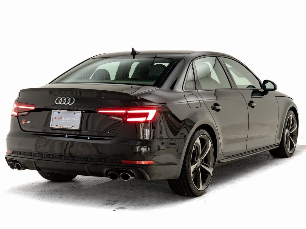Audi Beaverton offers this 2019 Mythos Black Metallic Audi S4 3.0T Prestige AWD. It is well equipped and includes these features and benefits: 10 Speakers, 4-Wheel Disc Brakes, ABS brakes, Air Conditioning, Alloy wheels, AM/FM radio, Audi smartphone interface (Apple CarPlay/Android Auto), Auto-dimming door mirrors, Auto-dimming Rear-View mirror, Automatic temperature control, Brake assist, Bumpers: body-color, Compass, Delay-off headlights, Driver door bin, Driver vanity mirror, Dual front impact airbags, Dual front side impact airbags, Electronic Stability Control, Emergency communication system: Audi connect CARE, Exterior Parking Camera Rear, Four wheel independent suspension, Front anti-roll bar, Front Bucket Seats, Front Center Armrest, Front dual zone A/C, Front fog lights, Front reading lights, Garage door transmitter: HomeLink, Heated door mirrors, Heated Front S Sport Seats, Heated front seats, Illuminated entry, Knee airbag, Leather Shift Knob, Leather steering wheel, Leather/Alcantara Seat Trim, Low tire pressure warning, Occupant sensing airbag, Outside temperature display, Overhead airbag, Overhead console, Panic alarm, Passenger door bin, Passenger vanity mirror, Power door mirrors, Power driver seat, Power moonroof, Power passenger seat, Power steering, Power windows, Radio data system, Radio: Audi Sound System, Rain sensing wipers, Rear air conditioning, Rear anti-roll bar, Rear fog lights, Rear reading lights, Rear seat center armrest, Rear window defroster, Remote CD player, Remote keyless entry, Speed control, Speed-sensing steering, Speed-Sensitive Wipers, Split folding rear seat, Spoiler, Sport steering wheel, Steering wheel mounted audio controls, Tachometer, Telescoping steering wheel, Tilt steering wheel, Traction control, Trip computer, Turn signal indicator mirrors, Variably intermittent wipers, and Wheels: 8.5" x 18" 5-Double-Spoke-Star Design. Bluetooth.