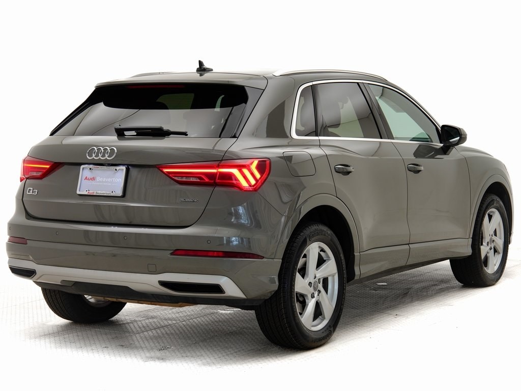 Audi Beaverton offers this 2020 Chronos Gray Metallic Audi Q3 Premium Plus AWD. It is well equipped and includes these features and benefits: Convenience Package (Alarm w/Motion Sensor, Audi Advanced Key, Audi Parking System Plus, Audi Side Assist, HomeLink Garage Door Opener, and SiriusXM All Access Service), Navigation Package (12.3" Audi Virtual Cockpit Screen, Audi Connect PRIME & PLUS, MMI Navigation Plus, and MMI Touch Response), Premium Plus Package (8-Way Power Driver & Passenger Seat, Aluminum Spectrum Inlays, Audi Phone Box w/Wireless Charging, Auto-Dimming Rear-View Mirror w/Compass, Full LED Headlights w/Unique DRL Signature, and LED Interior Lighting), 10 Speakers, 3.533 Axle Ratio, 4-Wheel Disc Brakes, ABS brakes, Air Conditioning, Alloy wheels, AM/FM radio, Audi smartphone interface (Apple CarPlay/Android Auto), Auto High-beam Headlights, Automatic temperature control, Brake assist, Bumpers: body-color, Delay-off headlights, Driver door bin, Driver vanity mirror, Dual front impact airbags, Dual front side impact airbags, Electronic Stability Control, Exterior Parking Camera Rear, Four wheel independent suspension, Front anti-roll bar, Front Bucket Seats, Front Center Armrest, Front dual zone A/C, Front fog lights, Front reading lights, Fully automatic headlights, Heated door mirrors, Heated Front Bucket Seats, Heated front seats, Illuminated entry, Interior Protection Kit, Knee airbag, Leather Seating Surfaces, Leather Shift Knob, Leather steering wheel, Low tire pressure warning, Occupant sensing airbag, Outside temperature display, Overhead airbag, Overhead console, Panic alarm, Passenger door bin, Passenger vanity mirror, Power door mirrors, Power driver seat, Power Liftgate, Power moonroof, Power steering, Power windows, Radio data system, Radio: Audi Sound System, Rain sensing wipers, Rear air conditioning, Rear anti-roll bar, Rear fog lights, Rear reading lights, Rear seat center armrest, Rear window defroster, Rear window wiper, Remote keyless entry, Speed control, Speed-sensing steering, Split folding rear seat, Spoiler, Stainless Steel Pedal Caps, Steering wheel mounted audio controls, Tachometer, Telescoping steering wheel, Tilt steering wheel, Traction control, Trip computer, Turn signal indicator mirrors, Variably intermittent wipers, and Wheels: 18" 5-Arm Design. Bluetooth.