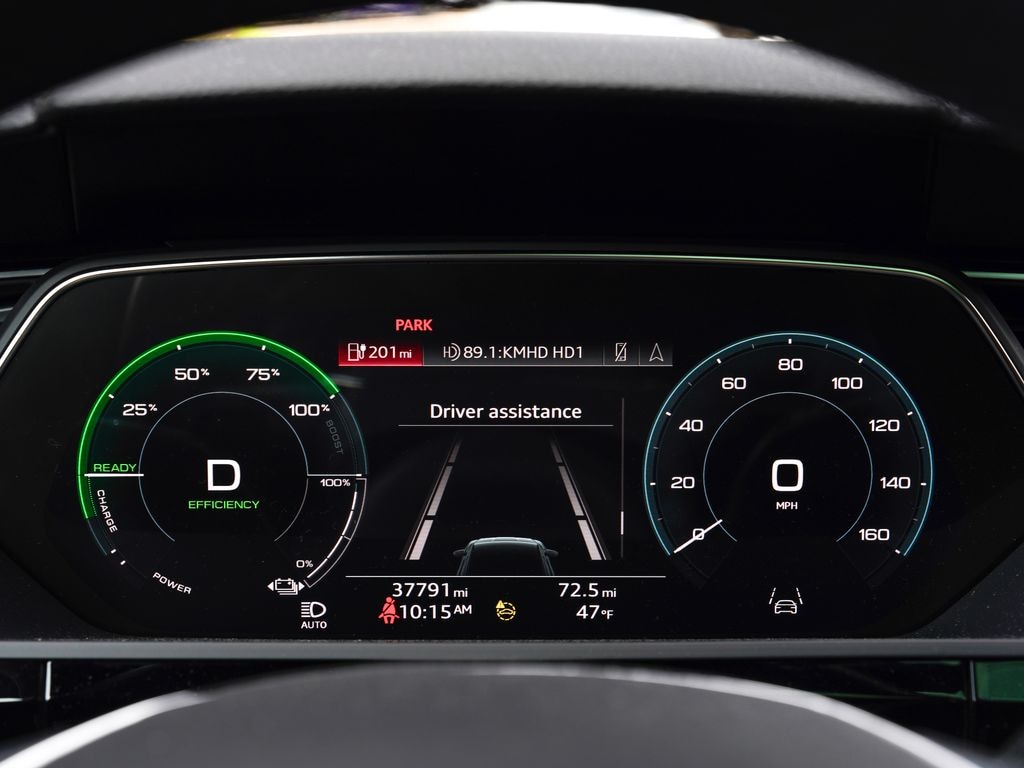 Audi Beaverton offers this 2022 Florett Silver Metallic Audi e-tron Sportback S line Premium Plus AWD. It is well equipped and includes these features and benefits: 10 Speakers, 4-Wheel Disc Brakes, 9.08 Axle Ratio, ABS brakes, Adaptive suspension, Air Conditioning, Alloy wheels, Audi smartphone interface (Apple CarPlay/Android Auto), Auto High-beam Headlights, Auto-dimming door mirrors, Auto-dimming Rear-View mirror, Auto-leveling suspension, Automatic temperature control, Brake assist, Bumpers: body-color, Compass, Delay-off headlights, Driver door bin, Driver vanity mirror, Dual front impact airbags, Dual front side impact airbags, Electronic Stability Control, Emergency communication system: Audi connect CARE, PRIME & PLUS, Exterior Parking Camera Rear, Four wheel independent suspension, Front anti-roll bar, Front Bucket Seats, Front Center Armrest, Front dual zone A/C, Front fog lights, Front reading lights, Fully automatic headlights, Garage door transmitter: HomeLink, Heated 8-Way Power Front Seats, Heated door mirrors, Heated front seats, Heated steering wheel, Illuminated entry, Leather Seating Surfaces, Low tire pressure warning, Memory seat, Navigation system: Audi MMI Navigation plus with Touch Response, Occupant sensing airbag, Outside temperature display, Overhead airbag, Overhead console, Panic alarm, Passenger door bin, Passenger vanity mirror, Power door mirrors, Power driver seat, Power Liftgate, Power moonroof: Panoramic, Power passenger seat, Power steering, Power windows, Radio data system, Radio: Audi Sound System, Rear air conditioning, Rear anti-roll bar, Rear dual zone A/C, Rear fog lights, Rear reading lights, Rear seat center armrest, Rear window defroster, Remote keyless entry, Security system, Speed control, Speed-sensing steering, Split folding rear seat, Spoiler, Steering wheel memory, Steering wheel mounted audio controls, Telescoping steering wheel, Tilt steering wheel, Traction control, Trip computer, Turn signal indicator mirrors, Variably intermittent wipers, and Wheels: 20" 5-Double-Spoke Turbine Bi-Color Design. Bluetooth.