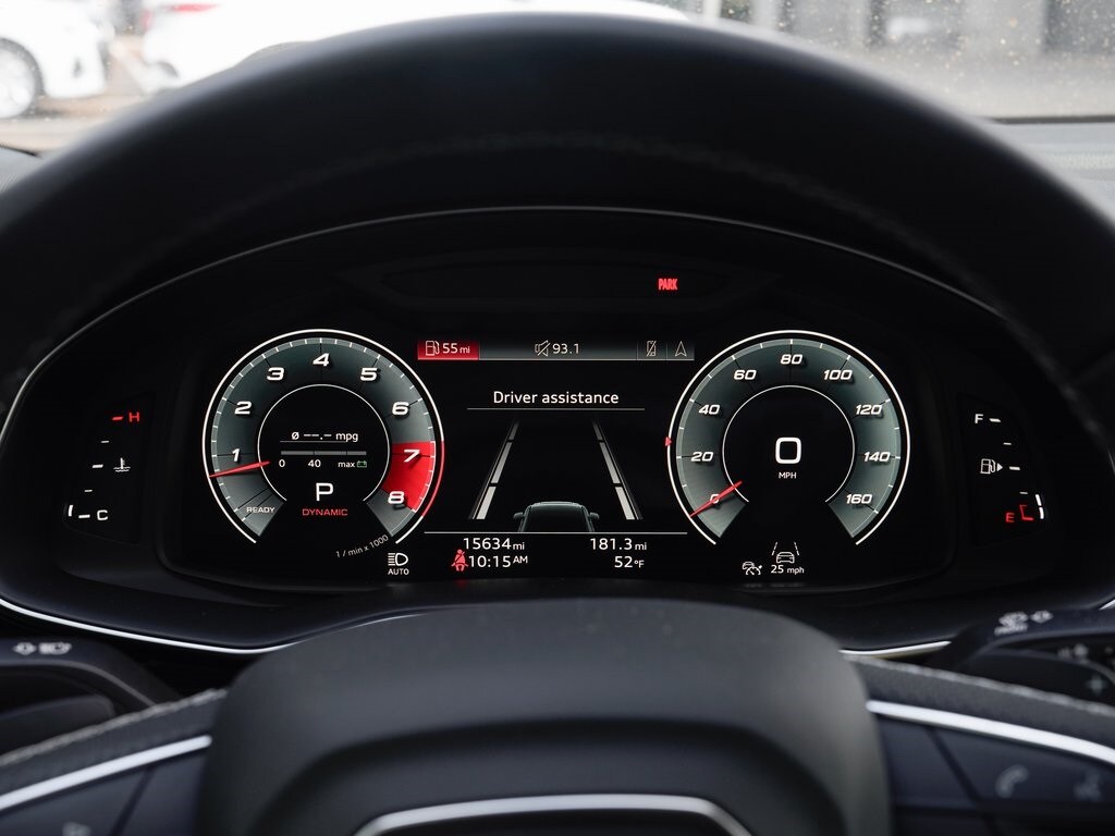 Audi Beaverton offers this 2023 Satellite Silver Metallic Audi SQ7 Prestige AWD. It is well equipped and includes these features and benefits: 19 Speakers, 3rd row seats: bench, 4-Wheel Disc Brakes, ABS brakes, Adaptive suspension, Air Conditioning, Alloy wheels, AM/FM radio: SiriusXM w/ 360L, Auto High-beam Headlights, Auto-dimming door mirrors, Auto-dimming Rear-View mirror, Auto-leveling suspension, Automatic temperature control, Axle Ratio: TBD, Bang & Olufsen Premium Sound System, Brake assist, Bumpers: body-color, Compass, Delay-off headlights, Diamond Stitched Valcona Leather Seat Trim, Driver door bin, Driver vanity mirror, Dual front impact airbags, Dual front side impact airbags, Electronic Stability Control, Emergency communication system: Audi connect CARE, Exterior Parking Camera Rear, Four wheel independent suspension, Front anti-roll bar, Front Bucket Seats, Front Center Armrest, Front dual zone A/C, Front fog lights, Front reading lights, Fully automatic headlights, Garage door transmitter: HomeLink, Heated door mirrors, Heated Front S Sport Seats, Heated front seats, Heated steering wheel, Illuminated entry, Leather Shift Knob, Leather steering wheel, Low tire pressure warning, Memory seat, Navigation system: Audi MMI Navigation plus with Touch Response, Occupant sensing airbag, Outside temperature display, Overhead airbag, Overhead console, Panic alarm, Passenger door bin, Passenger vanity mirror, Power door mirrors, Power driver seat, Power Liftgate, Power moonroof: Panoramic, Power passenger seat, Power steering, Power windows, Radio data system, Rain sensing wipers, Rear air conditioning, Rear anti-roll bar, Rear dual zone A/C, Rear fog lights, Rear reading lights, Rear seat center armrest, Rear side impact airbag, Rear window defroster, Rear window wiper, Reclining 3rd row seat, Remote keyless entry, Roof rack: rails only, Security system, Speed control, Speed-sensing steering, Split folding rear seat, Spoiler, Steering wheel memory, Steering wheel mounted audio controls, Tachometer, Telescoping steering wheel, Tilt steering wheel, Traction control, Trip computer, Turn signal indicator mirrors, Variably intermittent wipers, and Wheels: 21" 5-Twin-Spoke V Design. Bluetooth.