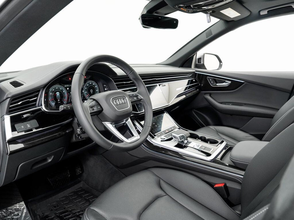 Audi Beaverton offers this 2025 Samurai Gray Metallic Audi Q8 55 Premium Plus AWD. It is well equipped and includes these features and benefits: 10 Speakers, 4-Wheel Disc Brakes, ABS brakes, Adaptive suspension, Air Conditioning, Alloy wheels, AM/FM radio: SiriusXM w/360L, Auto High-beam Headlights, Auto-dimming door mirrors, Auto-dimming Rear-View mirror, Automatic temperature control, Brake assist, Bumpers: body-color, Compass, Delay-off headlights, Driver door bin, Driver vanity mirror, Dual front impact airbags, Dual front side impact airbags, Electronic Stability Control, Emergency communication system: Audi connect CARE, Exterior Parking Camera Rear, Four wheel independent suspension, Front anti-roll bar, Front Bucket Seats, Front Center Armrest, Front dual zone A/C, Front fog lights, Front reading lights, Fully automatic headlights, Garage door transmitter: HomeLink, Genuine wood door panel insert, Headlight cleaning, Heated door mirrors, Heated Front Bucket Seats, Heated front seats, Illuminated entry, Leather Seating Surfaces, Leather Shift Knob, Leather steering wheel, Low tire pressure warning, Memory seat, Navigation system: Audi MMI Navigation with Touch Response, Occupant sensing airbag, Outside temperature display, Overhead airbag, Overhead console, Panic alarm, Passenger door bin, Passenger vanity mirror, Power door mirrors, Power driver seat, Power Liftgate, Power moonroof: Panoramic, Power passenger seat, Power steering, Power windows, Radio data system, Radio: Audi MMI Navigation Plus with MMI Touch Response, Rain sensing wipers, Rear air conditioning, Rear anti-roll bar, Rear fog lights, Rear reading lights, Rear seat center armrest, Rear side impact airbag, Rear window defroster, Rear window wiper, Remote keyless entry, Security system, Speed control, Speed-sensing steering, Split folding rear seat, Spoiler, Steering wheel memory, Steering wheel mounted audio controls, Tachometer, Telescoping steering wheel, Tilt steering wheel, Traction control, Trip computer, Turn signal indicator mirrors, Variably intermittent wipers, and Wheels: 21" 5-W-Spoke-Design Bicolor Finish. Bluetooth.