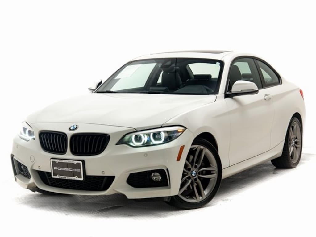 Porsche Beaverton offers this 2019 Alpine White BMW 2 Series 230i xDrive AWD. It is well equipped and includes these features and benefits: 4-Wheel Disc Brakes, 6 Speakers, ABS brakes, Aerodynamic Kit, Air Conditioning, Alloy wheels, Aluminum Hexagon Trim w/High Gloss Black Highlight, AM/FM radio, Ambient Lighting, Auto-Dimming Interior & Exterior Mirrors, Auto-Dimming Rear-View Mirror, Automatic temperature control, Brake assist, Bumpers: body-color, Comfort Access Keyless Entry, Delay-off headlights, Driver door bin, Driver vanity mirror, Dual front impact airbags, Dual front side impact airbags, Electronic Stability Control, Emergency communication system: BMW Assist eCall, Exterior Parking Camera Rear, Four wheel independent suspension, Front anti-roll bar, Front Bucket Seats, Front Center Armrest, Front dual zone A/C, Front fog lights, Front reading lights, Front Sport Seats, Fully automatic headlights, Hands-Free Bluetooth & USB Audio Connection, Heated door mirrors, Heated Front Seats, Heated Steering Wheel, Hi-Fi Sound System, Illuminated entry, Increased Top Speed Limiter, Knee airbag, Leather Shift Knob, Low tire pressure warning, Lumbar Support, M Steering Wheel, Moonroof, Occupant sensing airbag, Outside temperature display, Overhead airbag, Panic alarm, Passenger door bin, Passenger vanity mirror, Power door mirrors, Power driver seat, Power Front Seats, Power passenger seat, Power steering, Power windows, Radio data system, Radio: AM/FM Audio System, Rain sensing wipers, Rear anti-roll bar, Rear Spoiler, Rear window defroster, Remote keyless entry, Security system, SensaTec Upholstery, Shadowline Exterior Trim, SiriusXM Satellite Radio, Speed control, Speed-sensing steering, Speed-Sensitive Wipers, Split folding rear seat, Sport steering wheel, Steering wheel mounted audio controls, Tachometer, Telescoping steering wheel, Tilt steering wheel, Traction control, Trip computer, Turn signal indicator mirrors, Variably intermittent wipers, Wheels: 17" x 7.5" Bi-Color (Style 725), Wheels: 18" x 7.5" Fr & 18" x 8.0" Rr (Style 461M), and Without Lines Designation Outside. Bluetooth.
