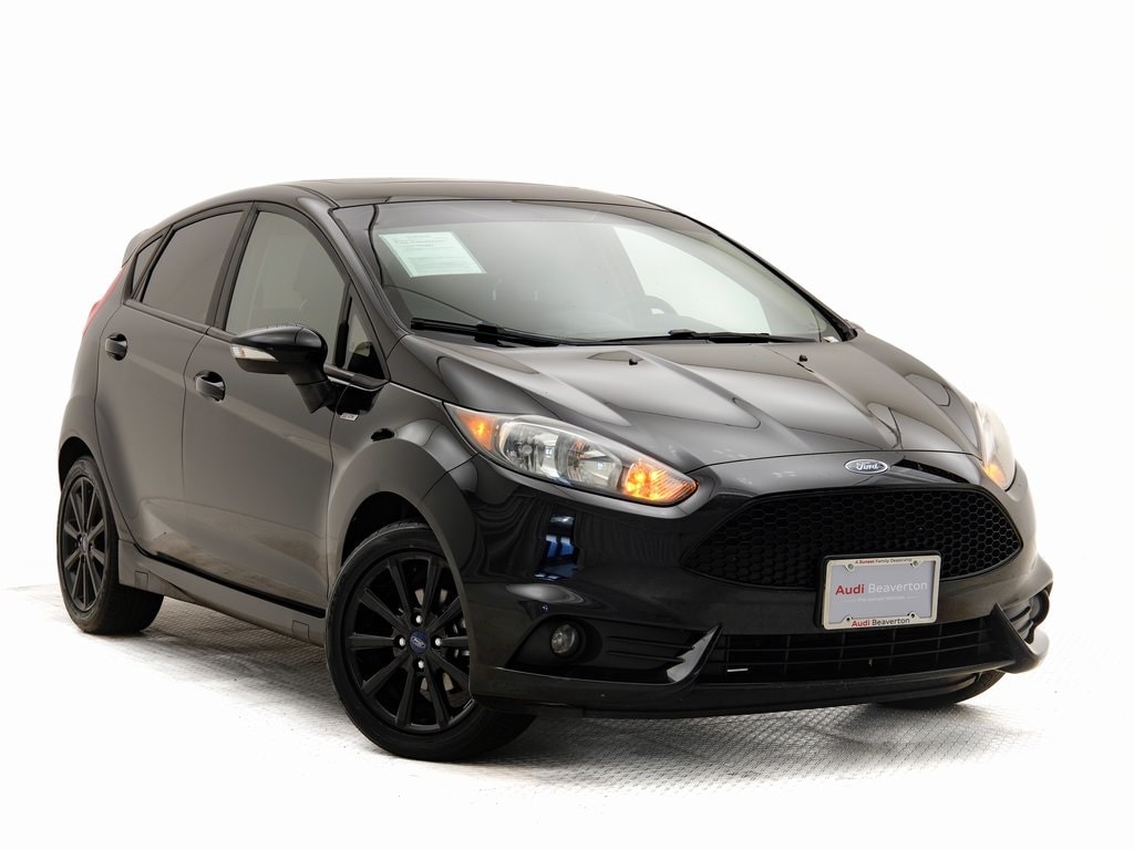 Audi Beaverton offers this 2019 Shadow Black Ford Fiesta ST FWD. It is well equipped and includes these features and benefits: Equipment Group 350A, ST Line Cold Weather Package (Electronic Automatic Temperature Control (EATC), Heated Front Seats, and Heated Mirrors w/Turn Signal Indicator), 6 Speakers, ABS brakes, Air Conditioning, Alloy wheels, AM/FM radio: SiriusXM, AppLink/Apple CarPlay and Android Auto, Brake assist, Bumpers: body-color, CD player, Compass, Delay-off headlights, Driver door bin, Driver vanity mirror, Dual front impact airbags, Dual front side impact airbags, Electronic Stability Control, Emergency communication system: SYNC 3 911 Assist, Exterior Parking Camera Rear, Front anti-roll bar, Front Bucket Seats, Front Center Armrest, Front fog lights, Front reading lights, Front wheel independent suspension, Fully automatic headlights, Illuminated entry, Knee airbag, Leather Shift Knob, Low tire pressure warning, Occupant sensing airbag, Outside temperature display, Overhead airbag, Overhead console, Passenger door bin, Passenger vanity mirror, Power door mirrors, Power Moonroof, Power steering, Power windows, Radio data system, Radio: AM/FM Stereo/CD/MP3 Player, Rear window defroster, Rear window wiper, Remote keyless entry, Security system, SiriusXM Radio, Speed control, Speed-sensing steering, Split folding rear seat, Spoiler, Steering wheel mounted audio controls, SYNC 3 Communications & Entertainment System, Tachometer, Telescoping steering wheel, Tilt steering wheel, Traction control, Trip computer, Unique Cloth Front Sport Bucket Seats, Variably intermittent wipers, Voice-Activated Touchscreen Navigation System, and Wheels: 16" Ebony Black Painted Aluminum. Bluetooth.