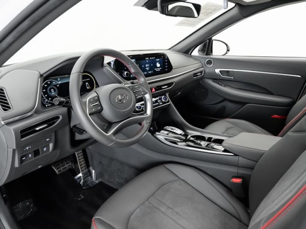 Porsche Beaverton offers this 2021 Quartz White Hyundai Sonata SEL Plus FWD. It is well equipped and includes these features and benefits: Cargo Package (Cargo Hook, Cargo Net, and Reversible Cargo Tray), Tech Package (Bose Premium Audio, Highway Drive Assist (HDA), LED Interior Lights, Option Group 05, Panoramic Sunroof, and Radio: AM/FM/HD/SiriusXM Display Audio w/Nav), Black Artificial Leather, 4-Wheel Disc Brakes, 6 Speakers, ABS brakes, Air Conditioning, Alloy wheels, AM/FM radio: SiriusXM, Apple CarPlay & Android Auto, Auto High-beam Headlights, Auto-dimming Rear-View mirror, Automatic temperature control, Brake assist, Bumpers: body-color, Carpeted Floor Mats, Delay-off headlights, Dinamica Suede/Leatherette Seating Surfaces, Driver door bin, Driver vanity mirror, Dual front impact airbags, Dual front side impact airbags, Electronic Stability Control, Emergency communication system: Blue Link Connected Car Service (3-year complimentary subscription), Exterior Parking Camera Rear, Four wheel independent suspension, Front anti-roll bar, Front Bucket Seats, Front Center Armrest, Front dual zone A/C, Front reading lights, Fully automatic headlights, Garage door transmitter: HomeLink, Heated door mirrors, Heated Front Bucket Seats, Heated front seats, Illuminated entry, Knee airbag, Low tire pressure warning, Mud Guards, Occupant sensing airbag, Outside temperature display, Overhead airbag, Overhead console, Panic alarm, Passenger door bin, Passenger vanity mirror, Power door mirrors, Power driver seat, Power steering, Power windows, Radio data system, Radio: AM/FM/MP3/HD/SiriusXM Display Audio, Rear anti-roll bar, Rear seat center armrest, Rear side impact airbag, Rear window defroster, Remote keyless entry, Security system, Speed control, Speed-sensing steering, Speed-Sensitive Wipers, Split folding rear seat, Steering wheel mounted audio controls, Tachometer, Telescoping steering wheel, Tilt steering wheel, Traction control, Trip computer, Turn signal indicator mirrors, Variably intermittent wipers, Wheels: 19 x 8.0J Aluminum Alloy, and Wireless Device Charging. Bluetooth, Black Artificial Leather.