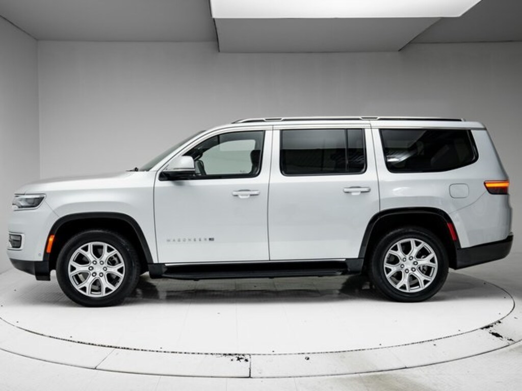 Porsche Beaverton offers this 2022 Silver Zynith Jeep Wagoneer Series II 4WD. It is well equipped and includes these features and benefits: Quick Order Package 22J, 10 Speakers, 3.21 Rear Axle Ratio, 3rd row seats: bench, 4-Wheel Disc Brakes, ABS brakes, Adjustable pedals, Air Conditioning, Alloy wheels, AM/FM radio: SiriusXM with 360L, Anti-whiplash front head restraints, Audio memory, Auto-dimming door mirrors, Auto-dimming Rear-View mirror, Auto-leveling suspension, Automatic temperature control, Brake assist, Bumpers: body-color, Compass, Delay-off headlights, Driver door bin, Driver vanity mirror, Driver's Seat Mounted Armrest, Dual front impact airbags, Dual front side impact airbags, Electronic Stability Control, Exterior Parking Camera Rear, Four wheel independent suspension, Front anti-roll bar, Front Bucket Seats, Front Center Armrest w/Storage, Front dual zone A/C, Front fog lights, Front reading lights, Fully automatic headlights, Garage door transmitter, Genuine wood console insert, Genuine wood dashboard insert, Genuine wood door panel insert, Heated door mirrors, Heated front seats, Heated steering wheel, Illuminated entry, Knee airbag, Leather Trimmed Bucket Seats, Low tire pressure warning, Memory seat, Navigation System, Normal Duty Suspension, Occupant sensing airbag, Outside temperature display, Overhead airbag, Overhead console, Panic alarm, Passenger door bin, Passenger seat mounted armrest, Passenger vanity mirror, Pedal memory, Power adjustable front head restraints, Power door mirrors, Power driver seat, Power Liftgate, Power passenger seat, Power steering, Power windows, Radio data system, Radio: Uconnect 5 Nav w/10.1" Display, Rain sensing wipers, Rear air conditioning, Rear anti-roll bar, Rear dual zone A/C, Rear reading lights, Rear seat center armrest, Rear window defroster, Rear window wiper, Reclining 3rd row seat, Remote keyless entry, Security system, Speed control, Speed-sensing steering, Speed-Sensitive Wipers, Split folding rear seat, Steering wheel memory, Steering wheel mounted audio controls, Tachometer, Telescoping steering wheel, Tilt steering wheel, Traction control, Trip computer, Turn signal indicator mirrors, Variably intermittent wipers, Ventilated front seats, Voltmeter, and Wheels: 20" x 9.0" Aluminum Base Finish. Bluetooth.