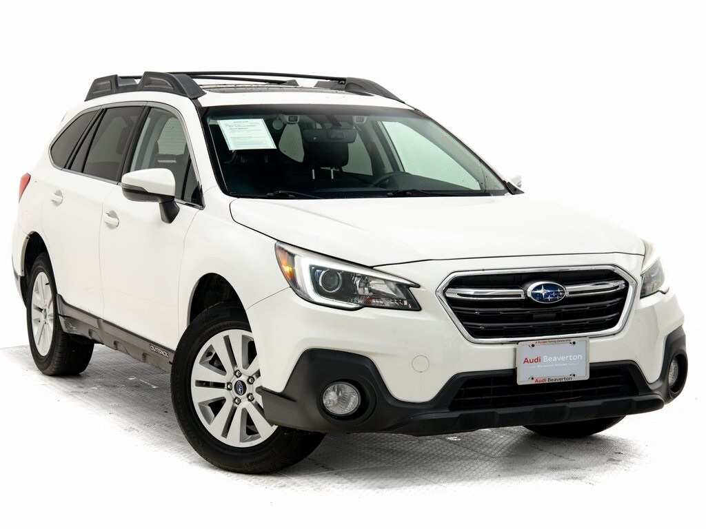 Audi Beaverton offers this 2019 Crystal White Pearl Subaru Outback 2.5i Premium AWD. It is well equipped and includes these features and benefits: BSD & RCTA & PRG & MR & Navi & HBA & TSSM (Blind Spot Detection (BSD), High Beam Assist (HBA), Power Rear Gate w/Automatic Close & Height Memory, Radio: Subaru STARLINK 8.0" Multimedia Nav System, Rear Cross Traffic Alert (RCTA), Smartphone Integration, Turn Signal Side Mirrors, and Vehicle Information Display), Power Moonroof Package (Auto-Dimming Rear View Compass Mirror w/HomeLink), 17" Alloy Wheels, 4-Wheel Disc Brakes, 4.111 Axle Ratio, 6 Speakers, ABS brakes, Air Conditioning, Alloy wheels, AM/FM radio: SiriusXM, Auto-dimming Rear-View mirror, Automatic temperature control, Brake assist, Bumpers: body-color, CD player, Cloth Upholstery, Compass, Driver door bin, Driver vanity mirror, Dual front impact airbags, Dual front side impact airbags, Electronic Stability Control, Emergency communication system, Exterior Parking Camera Rear, Four wheel independent suspension, Front anti-roll bar, Front Bucket Seats, Front Center Armrest w/Storage, Front dual zone A/C, Front fog lights, Front reading lights, Fully automatic headlights, Garage door transmitter, Heated door mirrors, Heated Front Bucket Seats, Heated front seats, Illuminated entry, Leather Shift Knob, Low tire pressure warning, Occupant sensing airbag, Outside temperature display, Overhead airbag, Overhead console, Panic alarm, Passenger door bin, Passenger vanity mirror, Power door mirrors, Power driver seat, Power steering, Power windows, Radio: Subaru STARLINK 8.0" Multimedia Plus System, Rear anti-roll bar, Rear Bumper Cover, Rear seat center armrest, Rear window defroster, Rear window wiper, Remote keyless entry, Roof rack, Security system, Speed control, Speed-sensing steering, Split folding rear seat, Spoiler, STARLINK/Apple CarPlay/Android Auto, Steering wheel mounted audio controls, Steering Wheel Paddle Shift Control Switches, Tachometer, Telescoping steering wheel, Tilt steering wheel, Traction control, Trip computer, and Variably intermittent wipers. Bluetooth.