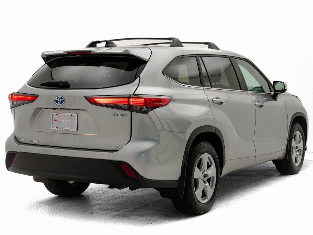 Audi Beaverton offers this 2023 Celestial Silver Metallic Toyota Highlander Hybrid LE AWD. It is well equipped and includes these features and benefits: 2.5L I4 PDI Hybrid DOHC 16V LEV3-SULEV30, 18" Painted Alloy Wheels, 3rd row seats: split-bench, 4-Wheel Disc Brakes, 6 Speakers, ABS brakes, Air Conditioning, Alloy wheels, AM/FM radio: SiriusXM, Apple CarPlay/Android Auto, Auto High-beam Headlights, Automatic temperature control, Axle Ratio: TBD, Brake assist, Bumpers: body-color, Delay-off headlights, Driver door bin, Driver vanity mirror, Dual front impact airbags, Dual front side impact airbags, Electronic Stability Control, Emergency communication system: Safety Connect (up to 10-year trial subscription), Exterior Parking Camera Rear, Fabric Seat Trim, Four wheel independent suspension, Front anti-roll bar, Front Bucket Seats, Front Center Armrest, Front dual zone A/C, Front fog lights, Front reading lights, Fully automatic headlights, Heated door mirrors, Illuminated entry, Knee airbag, Leather Shift Knob, Leather steering wheel, Low tire pressure warning, Occupant sensing airbag, Outside temperature display, Overhead airbag, Overhead console, Panic alarm, Passenger door bin, Passenger vanity mirror, Power door mirrors, Power driver seat, Power Liftgate, Power steering, Power windows, Radio: 8" Toyota Audio Multimedia, Rear air conditioning, Rear anti-roll bar, Rear reading lights, Rear seat center armrest, Rear window defroster, Rear window wiper, Reclining 3rd row seat, Remote keyless entry, Security system, Speed control, Speed-sensing steering, Split folding rear seat, Spoiler, Steering wheel mounted audio controls, Telescoping steering wheel, Tilt steering wheel, Traction control, Trip computer, Turn signal indicator mirrors, and Variably intermittent wipers. Bluetooth, 2.5L I4 PDI Hybrid DOHC 16V LEV3-SULEV30.