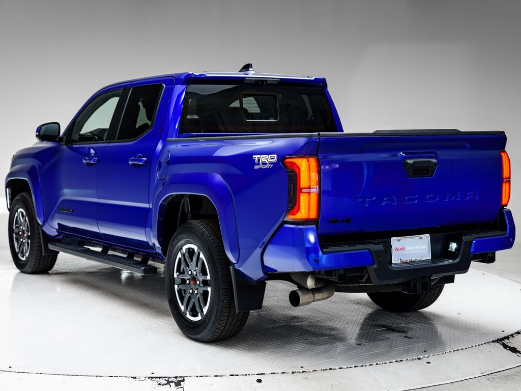 Audi Beaverton offers this 2024 Blue Crush Metallic Toyota Tacoma TRD Sport 4WD. It is well equipped and includes these features and benefits: 4WD, ABS brakes, Alloy wheels, Electronic Stability Control, Heated door mirrors, Illuminated entry, Low tire pressure warning, Remote keyless entry, Traction control, 3.583 Axle Ratio, 4-Wheel Disc Brakes, 6 Speakers, Air Conditioning, AM/FM radio: SiriusXM, Anti-whiplash front head restraints, Apple CarPlay/Android Auto, Auto High-beam Headlights, Auto-dimming Rear-View mirror, Automatic temperature control, Brake assist, Bumpers: body-color, Driver door bin, Driver vanity mirror, Dual front impact airbags, Dual front side impact airbags, Emergency communication system: Safety Connect (1-year trial), Exterior Parking Camera Rear, Fabric Seat Trim (FE), Four wheel independent suspension, Front anti-roll bar, Front Bucket Seats, Front Center Armrest, Front fog lights, Front reading lights, Fully automatic headlights, Knee airbag, Leather Shift Knob, Leather steering wheel, Occupant sensing airbag, Outside temperature display, Overhead airbag, Overhead console, Panic alarm, Passenger door bin, Passenger vanity mirror, Power door mirrors, Power steering, Power windows, Radio: 8" Toyota Audio Multimedia, Rear step bumper, Rear window defroster, Security system, Speed control, Speed-sensing steering, Split folding rear seat, Steering wheel mounted audio controls, Tachometer, Telescoping steering wheel, Tilt steering wheel, Trip computer, Turn signal indicator mirrors, Variably intermittent wipers, and Wheels: 18" TRD Sport Alloy. 4WD, ABS brakes, Alloy wheels, Electronic Stability Control, Heated door mirrors, Illuminated entry, Low tire pressure warning, Remote keyless entry, Traction control.
