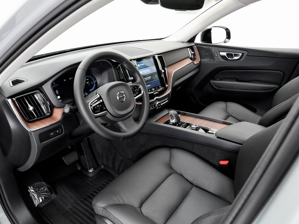 Audi Beaverton offers this 2024 Gray Metallic Volvo XC60 Recharge Plug-In Hybrid T8 Plus Dark Theme AWD. It is well equipped and includes these features and benefits: Climate Package w/Booster Seats (Heated Steering Wheel and Integrated 2 Outer Position 2nd Row Booster Cushions), Protection Package (All-Weather Floor Mats and Cargo Tray), 2.0L I4 Hybrid Turbocharged DOHC 16V LEV3-SULEV30, 11 Speakers, 4-Wheel Disc Brakes, ABS brakes, Air Conditioning, Alloy wheels, AM/FM radio: SiriusXM, Anti-whiplash front head restraints, Apple CarPlay, Auto High-beam Headlights, Auto-dimming door mirrors, Auto-dimming Rear-View mirror, Automatic temperature control, Brake assist, Bumpers: body-color, Delay-off headlights, Driver door bin, Driver vanity mirror, Dual front impact airbags, Dual front side impact airbags, Electronic Stability Control, Emergency communication system: Volvo Cars App w/4 Year Subscription, Exterior Parking Camera Rear, Four wheel independent suspension, Front anti-roll bar, Front Bucket Seats, Front Center Armrest, Front dual zone A/C, Front reading lights, Fully automatic headlights, Garage door transmitter: HomeLink, Genuine wood console insert, Genuine wood dashboard insert, harman/kardon Premium Sound, Heated door mirrors, Heated Front Bucket Seats, Heated front seats, Illuminated entry, Knee airbag, Leather Shift Knob, Leather Upholstery, Low tire pressure warning, Memory seat, Occupant sensing airbag, Outside temperature display, Overhead airbag, Panic alarm, Passenger door bin, Passenger vanity mirror, Power door mirrors, Power driver seat, Power moonroof, Power Operated Tailgate, Power passenger seat, Power steering, Power windows, Radio data system, Radio: High Performance Audio System, Rain sensing wipers, Rear anti-roll bar, Rear fog lights, Rear reading lights, Rear seat center armrest, Rear window defroster, Rear window wiper, Remote keyless entry, Security system, Speed control, Split folding rear seat, Spoiler, Steering wheel mounted audio controls, Tachometer, Telescoping steering wheel, Tilt steering wheel, Traction control, Trip computer, Turn signal indicator mirrors, Variably intermittent wipers, Wheels: 19" 5-Double Spoke Black Diamond Cut Alloy, and Wheels: 20" 6-Spoke Black Diamond Cut Alloy. Bluetooth, 2.0L I4 Hybrid Turbocharged DOHC 16V LEV3-SULEV30.